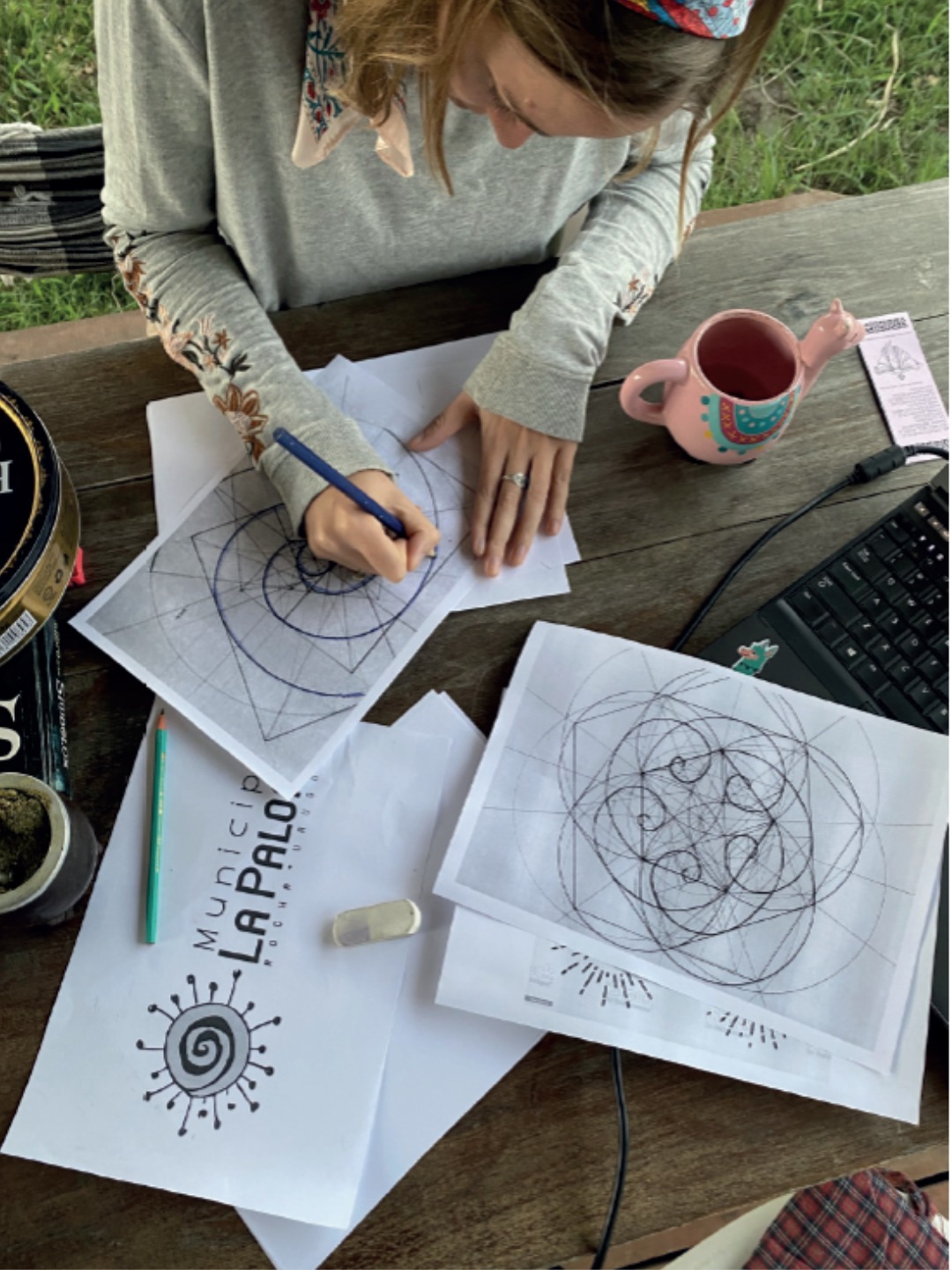 La búsqueda del isotipo se realizó a partir de formas espiraladas inspiradas en el movimiento de las olas, las figuras de caracolas y de la imagen de las escaleras del Faro de La Paloma